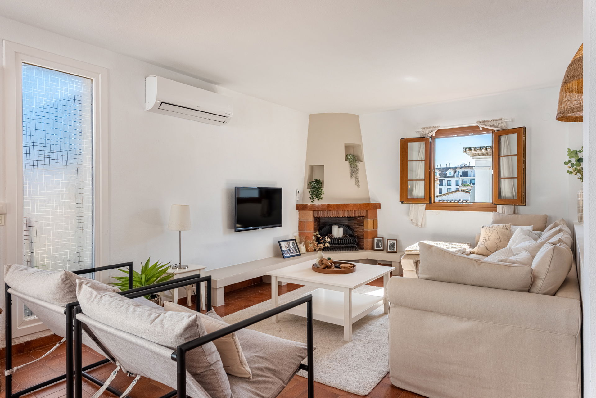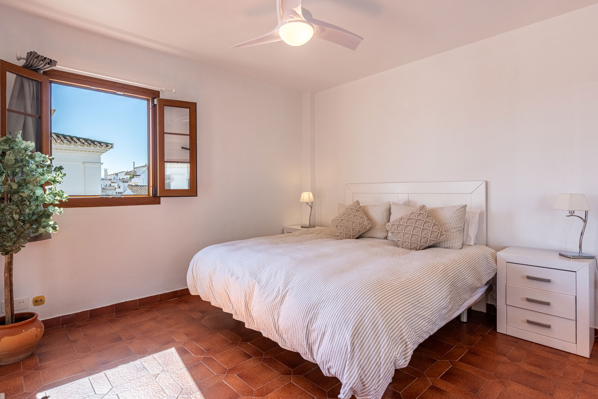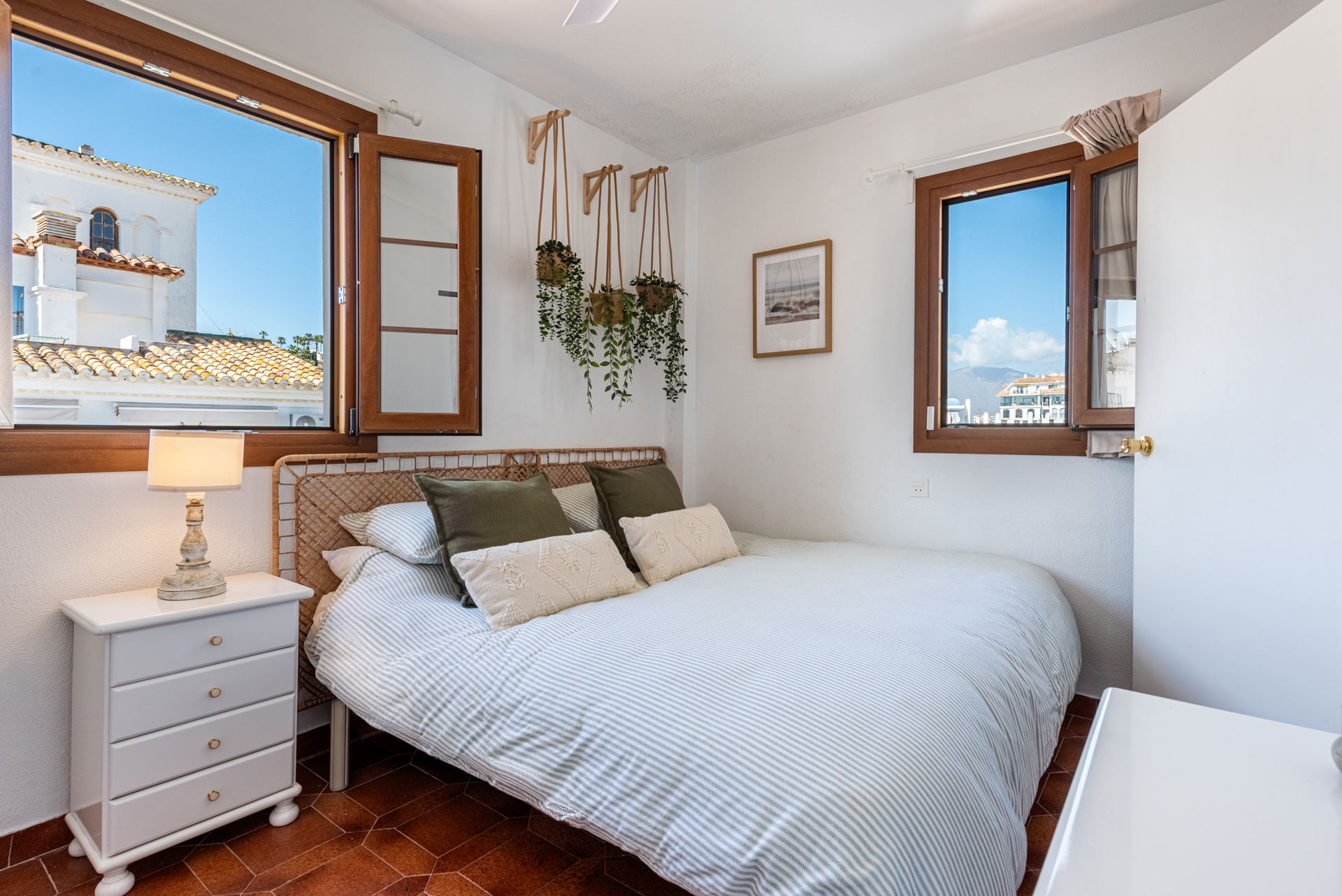 The apartment features three spacious and beautifully presented bedrooms, each filled with natural light and enjoying picturesque views of either the marina or the surrounding mountains. Blending authentic Spanish charm with modern comforts, all bedrooms are equipped with air conditioning to ensure a comfortable stay year-round.