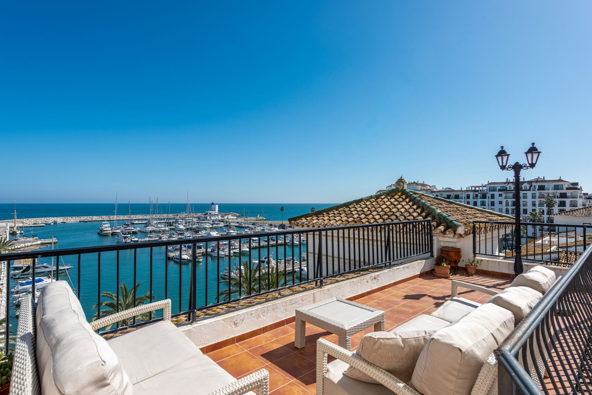 Marina View Penthouse is a stunning traditional Spanish apartment set in the heart of Puerto de la Duquesa, offering breathtaking panoramic views across the marina and the Mediterranean Sea. With restaurants, beaches, and vibrant local life right on your doorstep, it’s the perfect setting for a relaxed yet lively coastal escape.