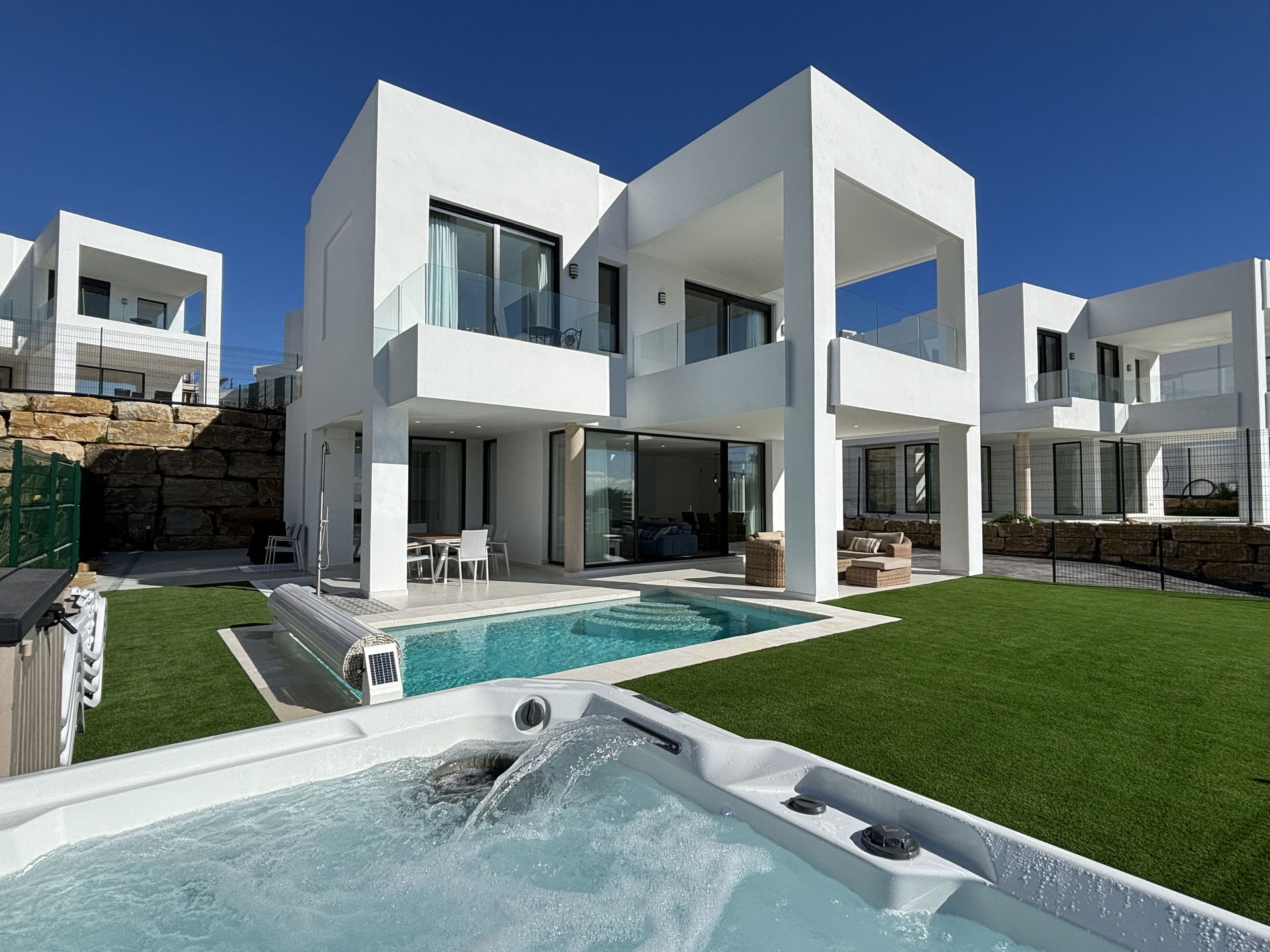 The Villa is located 7 minutes from the prestigious port of Sotogrande and just 9 minutes from the bustling Puerto De La Duquesa.